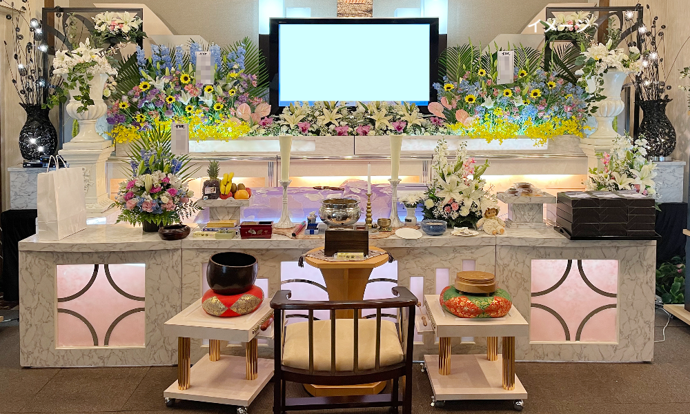 - 位牌・焼香セット・受付・仏衣・ドライアイス・祭壇供物